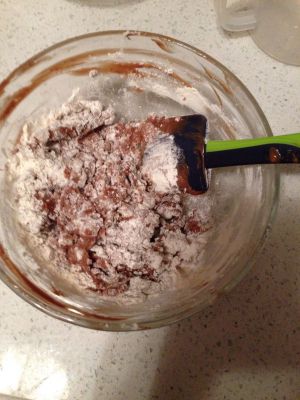 加入花生油和巧克力拌匀