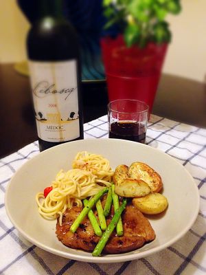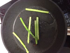 煎过牛排之后,直接煎芦笋,基本1分钟就OK了