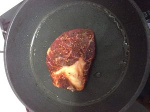 牛排是这道菜的关键,哪里的牛排卖得好,哪个部位的好吃,是要多试几次才会有经验的,我一般会买腌好的眼肉部位(或者没腌的配黑椒汁),厚度大概1.5cm,平底锅烧得非常非常热,少许橄榄油,每面1分钟,出来的差不多5成熟偏6成