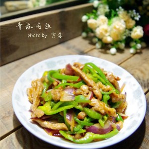 猪瘦肉洗净,切成粗一点的肉丝;猪肉用适量盐、料酒、淀粉水(淀粉+清水)、生抽、抓匀;入锅之前再调入适量植物油拌匀;