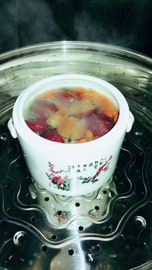 蒸锅稳水,起水汽后,把煲放进蒸锅里