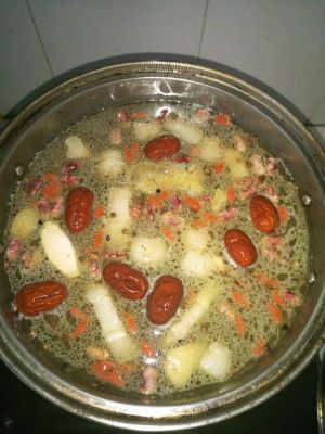 准备好所有的配料,芸豆因为买回来有点儿晚儿,泡水时间还不够。