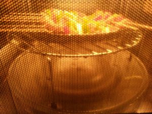 弄好后,刷上一层薄薄的油,放入烤箱,按照自己家烤箱温度设置