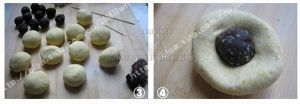 将面团分成均匀份量的小粒(约12粒),相应的将红豆沙内馅也分成相同份数。将面团压扁,包入内馅,再揉成圆球状。