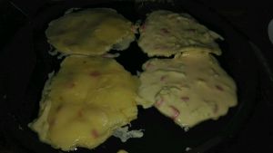 我用的电饼铛,煎成小的或大的都可以,嘿嘿这锅不太好
