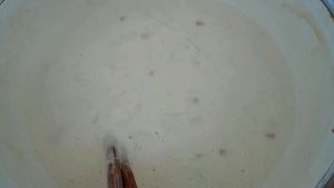 调面糊时加适量的水、橄榄油和盐,调好的面糊,浓度能挂在筷子上,就行