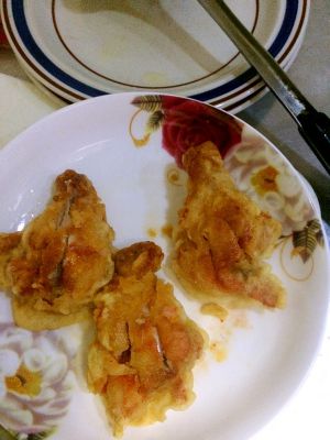 鸡翅根划几道加入姜粉,蒜粉,糖,料酒,胡椒粉等生抽淹入味(因为时间不允许所以去超市买腌好的翅根,奥尔良口味的,回来最好洗一洗,太咸了)