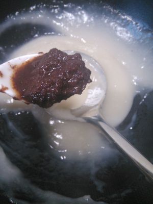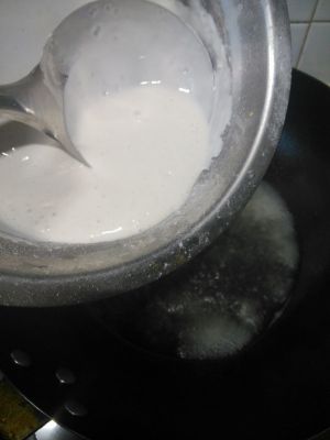 随后加入糯米粉兑成的糊糊,小火熬煮