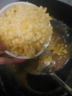 苹果一个和姜半块切成极细的小丁,辣椒打成粉准备好
