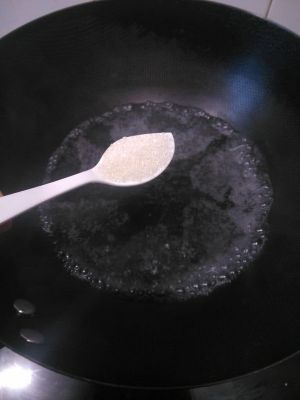锅里面烧热水,加入适量砂糖搅拌溶化