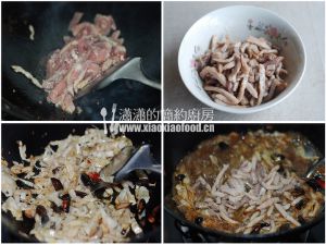 炒锅放1匙油,略烧热后,下肉丝翻炒,炒到肉丝变白后立刻起锅。