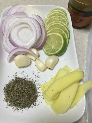 草童子鸡去头去脚,洗净沥干水分备用,准备各种配料