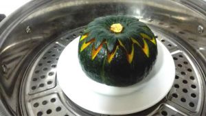蒸锅中入水,将南瓜盅盖盖放入锅中,锅中水沸后蒸25分钟