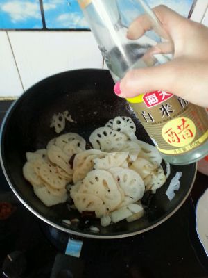 炒匀糖后放入白醋,白醋与藕片齐平,翻炒一下!
