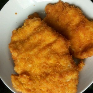 炸好后依个人口味放番茄酱,黑胡椒等等。有的喜欢切小块,我喜欢大块。。。。。就没切。。。。。