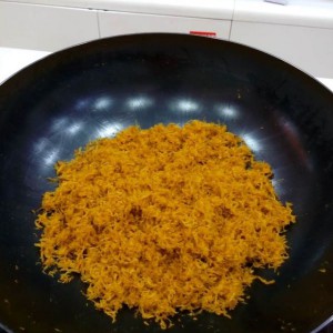 电磁炉600W,翻炒8分钟左右,加糖,盐,咖喱粉再炒2分钟。