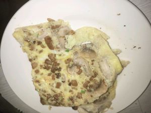 等鸡蛋表面凝结后,再过两分钟便可以起锅了,口味重的可以在鸡蛋饼上抹一些酱。