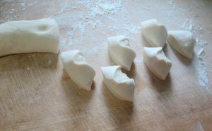 饧好的面团搓成细长条,切成大小均匀的小剂子