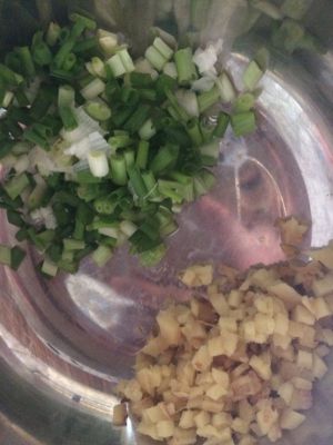 葱,姜洗净切碎备用