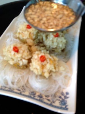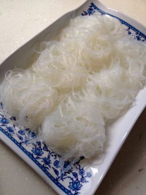 粉丝用手捋成一团团的、放盘中,易夹起食用。