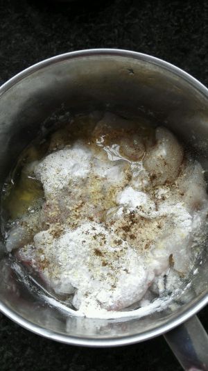 鱼肉加入一勺盐,三勺淀粉,一个蛋清,适量胡椒粉,料酒。抓调均匀后放入冰箱冷藏待用,鱼骨也类似调味待用。同时酸菜淘洗切段待用。
