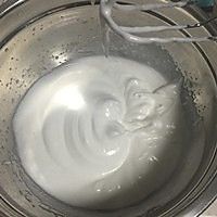 蛋白里加点柠檬汁、盐和三分之一砂糖,中速打至起大泡再分次加入余下砂糖,打至软性发泡