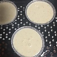 将面糊装人小锡纸模具杯里装十成满,轻磕出气泡