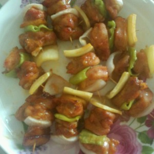 烤肉料加适量凉白开水搅匀,放入鸡肉块搅拌均匀放入冰箱冷藏室腌制两个小时以上!