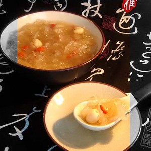 把银耳,莲子,水,冰糖等一同放入锅内,用大火烧开后改小火,炖至银耳、莲子软糯