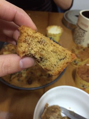 把磨好的红枣加入油拌匀后分次加入蛋糊中上下搅拌均匀即可!烤箱预热至200度、中层20分钟左右就可以吃了!