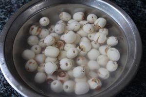 先将莲子提前浸泡几个小时,藕洗净去皮切小块备用,葱切段,姜切片。