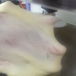 除黄油外,所有材料倒入厨师机,揉至扩展阶段,然后加入黄油揉至完全阶段,可以拉出手套膜