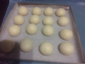 平均分成16等份,46克每个,滚圆后醒发15分钟