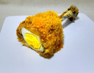 外层蘸少许蛋液后,在面包糠里滚一下,表面均匀地洒少许植物油