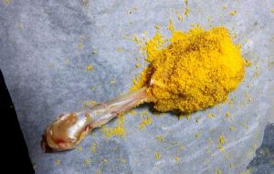 将鸡粉,盐,料酒和黑胡椒粉拌匀,将鸡腿放在里面腌制十分钟