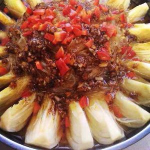 剁碎的剁椒撒入,水开后上锅蒸5分钟