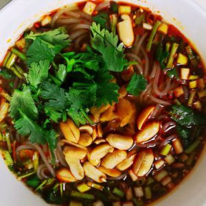 家中只有这种细的红薯粉,很好煮,水烧开,下入红薯粉,煮至能夹断