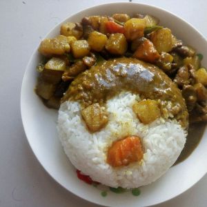 加入咖喱粉,清水。水末过表面即可。待水开后转中小火,加上盖子。(加盖子的目的是为了不让香味跑掉,同时也更好的让食材入味儿。)