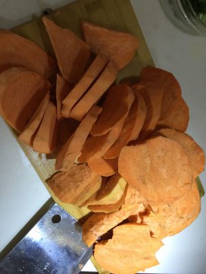 大番薯洗净后切片,然后用盐抹匀一下表面