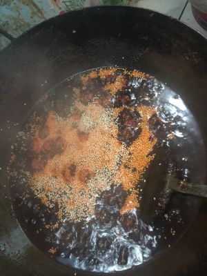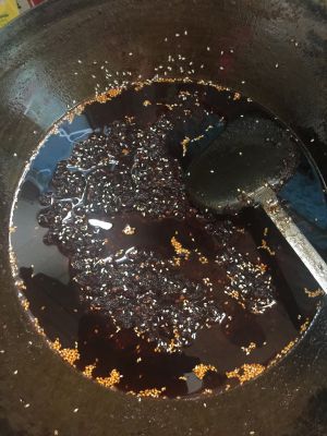 大约熬制半个小时就可以了!(期间手不要停,要用铲子一直翻动,推锅底!)撒上两把熟芝麻,适量鸡精!