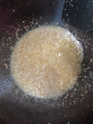 锅中倒入适量的油(油要多一点),把蒜末,生姜末倒入小火炒香