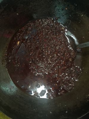 这个时候要小火慢慢的边熬制,边用铲子翻动,以免糊锅!