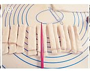 擀开好的面皮等分切开,这里我是只想用少量的油来炸油条,所以切的比较小份。