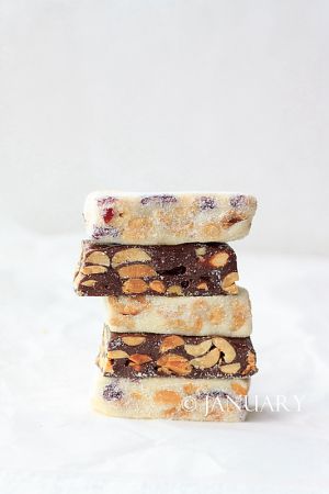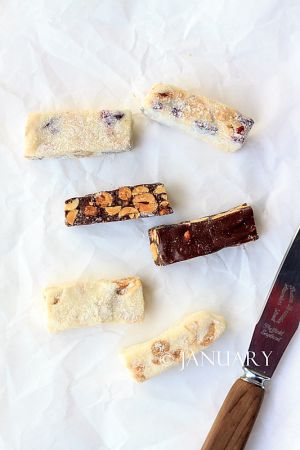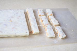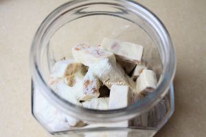 将牛轧糖放入瓶罐中,里面可以加入少许奶粉防粘。