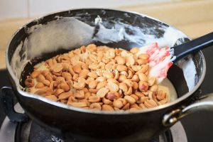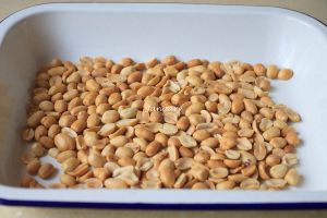 花生入150度的烤箱,烤15~20分钟,将熟花生放凉,去衣;