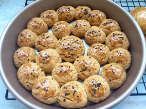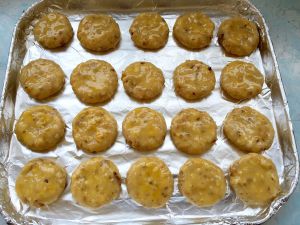 团小团按扁,刷蛋液(剩的半个鸡蛋!