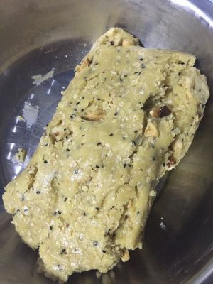 一个半鸡蛋液油糖拌匀,下一步筛入面粉淀粉苏打粉!
