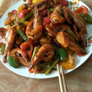把虾成出接着油放准备好的郫县豆瓣酱 耗油 彩椒 芹菜 葱姜蒜 炒熟放虾 炸上色就可以炒出吃了