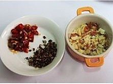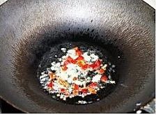 锅热油,爆香辣椒干和蒜末