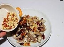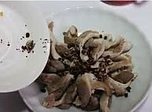 花椒倒在炒好的猪肚上面,